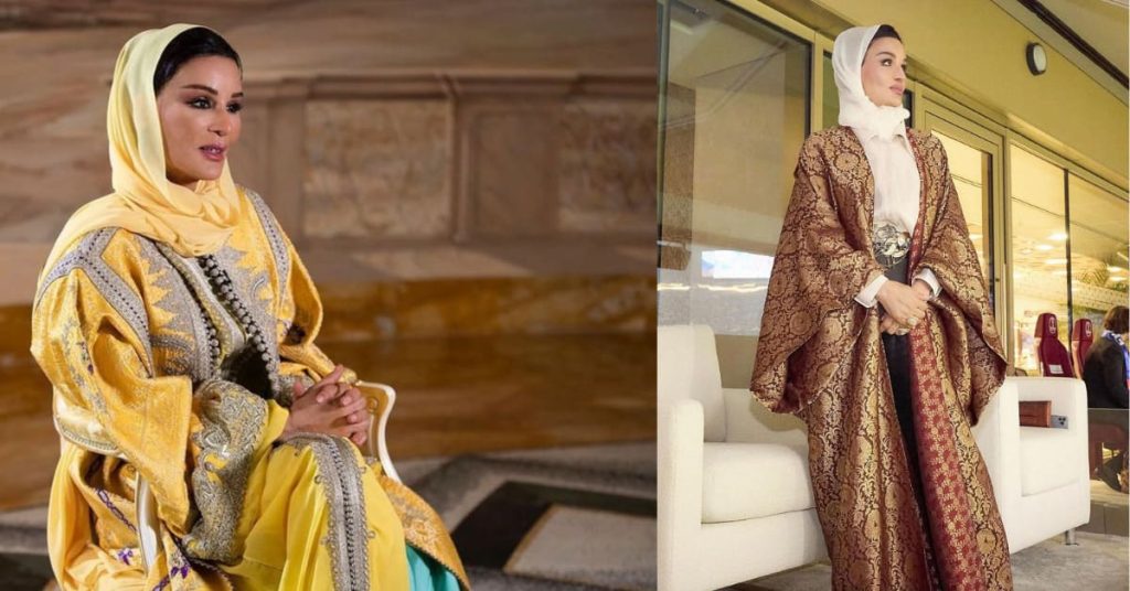 A true icon of refined fashion, Sheikha Moza seamlessly blends modesty with high fashion. Her resortwear includes tailored kaftans, structured tunics, and elegant headscarves that match her ensembles. She proves that modest dressing doesn’t mean sacrificing a commanding presence.